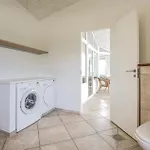 La Holiday Home Krogsande Blavand XI dispone de un cuarto de baño con bañera de hidromasaje, una ducha y lavadora. La secadora también garantizan una experiencia cómoda.